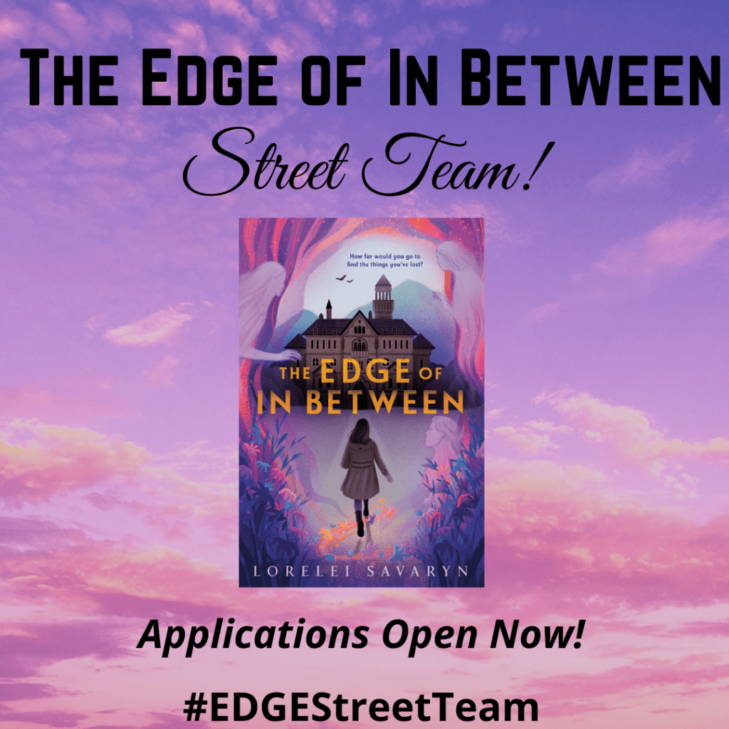 As soon as you’re accepted, you’ll get access to an e-galley of THE EDGE OF IN BETWEEN, which means you’ll be among the first people ever to read it. My hope is that Street Team members will be able to finish the book by mid-February, when we officially launch all the fun!